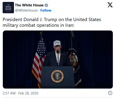 U.S. and Israeli forces initiated coordinated strikes on multiple Iranian targets, with the White House framing the action as necessary to eliminate strategic threats tied to Iran’s nuclear and missile programs. The announcement was delivered via video statement and social media, where the president directly addressed the Iranian public.